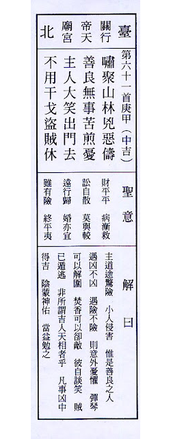行天宮解籤詩 第六十一籤【 中吉。庚甲】