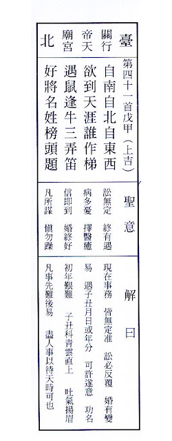 行天宮解籤詩 第四十一籤【上吉。戊甲】