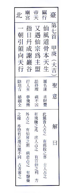 行天宮解籤詩 第七籤【 大吉。甲庚】