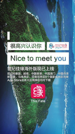 隨著大陸網路產業的高速發展,一大批大陸網路企業領頭羊,開始紛紛向全球市場進軍。不僅高科技硬體中的通訊設備、電腦和智慧型手機,已在國際市場中有著舉重若輕的地位,包括即時通訊、智慧出行、移動支付等APP產品,也逐漸在海外市場中聲名鵲起。日前,大陸知名的婚戀交友平台世紀佳緣,也正式推出面向國際市場的婚戀交友產品「This Fate」,成為網路平台新標竿! ...... [閱讀更多]