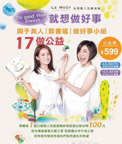 由於美人發起的做好事小組,一轉眼,今年進入第九周年,今年特地選擇了台灣之光,亞洲最佳前五十大餐廳的台中樂沐法式餐廳合作,由美女主廚陳嵐舒,率領點心主廚MAKITO研發出口味令人驚嘆的「白雪戀人乳酪蛋糕」,做為今年「就想做好事」的主題蛋糕;同時邀請到目前人氣正旺,主演「通靈少女」的瑤瑤(郭書瑤),擔任今年的代言人。 今年主要捐助的對象,是凱歌園少年中途之家,並是財團...... [閱讀更多]