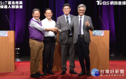 (翻攝YOUTUBE TVBS NEWS頻道) 台北市長參選人首場電視辯論會4日登場,5名市長候選人中,獨缺現任台北市長柯文哲,4名候選人丁守中、姚文智、李錫錕、吳蕚洋都到場。辯論前4名候選人一字排開大合照,未料,3號的民進黨候選人姚文智竟然在眾目睽睽之下比出「柯文哲的4號」,隨後才急忙改比3的手勢,引發外界聯想。 對此,國民黨候選人丁...... [閱讀更多]