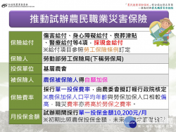 農委會表示,農民職災保險在試辦期間採自願性加保方式辦理,農保被保險人得自願加保。(圖/行政院農委會) 行政院在今(12)日的院會上,通過《農民健康保險條例》部分條文修正草案。修正草案中,為增進農民職業安全及經濟補償,使遭受職業災害農民和家屬能獲得更完整保障,因此將推動試辦農民職業災害保險。農委會表示若立法院審議進度順利,農民職災保險將在2018...... [閱讀更多]