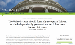(圖/翻攝美國白宮請願網站petitions.whitehouse.gov) 美國白宮請願網站「WE the PEOPLE」,日前有人發起連署,呼籲「美國正式承認台灣為獨立國家」,7日提案至今僅短短1週,連署人數迅速突破10萬人門檻。根據規定,白宮須對此作出正式回應。 署名為「K.W.」的網友7日在該網站發起連署,標題寫道「美國應正式承認...... [閱讀更多]