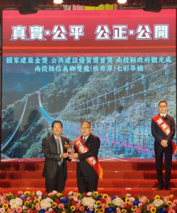 記者李家旻/南投報導 由南投縣政府主辦規劃興建雙龍(依希岸)七彩吊橋,在第23屆國家建築金獎公共建設優質獎評比中,在眾多參選公共工程競爭中,脫穎而出獲得「首獎」,肯定縣府與地方在規劃興建這座吊橋過程的努力。 ▲南投縣信義鄉雙龍(依希岸)七彩吊橋榮獲第23屆國家建築金獎公共建設優質獎「首獎」(圖/記者李家旻提供) 雙龍瀑布受「莫拉克風災」導致該景點沒落十餘年,縣長林明溱...... [閱讀更多]