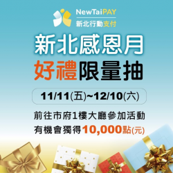 記者黃俊育 / 新北報導 新北幣結合新北歡樂耶誕城隆重登場!新北市政府打造永續智慧城市與數位經濟生態圈所推出之新北行動支付NewTaiPAY,結合新北歡樂耶誕城活動,自今年11月11日開城日起,活動期間每日限量提供新北幣好康優惠,邀請參與新北歡樂耶誕城之民眾加入,一起體驗無疆界、零現金之便捷支付方式! 111年11月11日耶誕城開城日起至112年1月2日,每日限量提供新北幣好康...... [閱讀更多]
