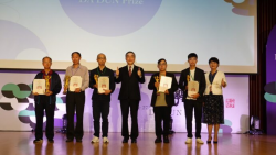 記者孟憲玉/台中報導 第27屆臺中市大墩美展11/5日下午3時在臺中市政府4樓集會堂舉行頒獎典禮,今年大墩美展共有來自全球192件作品獲獎,副市長黃國榮代表市長盧秀燕出席頒獎典禮,典禮壓軸由黃國榮副市長揭曉備受矚目的5位「大墩獎」得主,每位得主獲得24萬元獎金,以及王水河雕塑大師所設計製作的「小金人雕像」獎座。 ▲副市長黃國榮-中-文化局長陳佳君-右-與...... [閱讀更多]