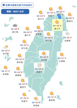 記者黃宣瑄/綜合報導 中央氣象局表示,今(27)日水氣較少,各地大多為多雲到晴,環境為偏東風,東半部地區有局部短暫陣雨,基隆北海岸則為零星飄雨,午後南部地區及其他山區有局部短暫雷陣雨,但雨勢較小;氣溫方面,各地白天溫暖微熱,預測高溫約30~34度,清晨低溫普遍落在24、25度之間,早晚感受較涼,日夜溫差稍大,早出晚歸請留意溫度變化。 各地天氣晴朗多雲。(圖/中央氣象局) 氣...... [閱讀更多]
