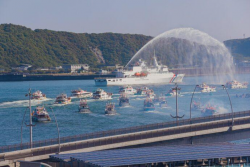 記者江志明/宜蘭報導 首創全台唯一海陸遶境的「2022蘭陽媽祖文化節」,16日早上在南方澳南天宮舉行海陸科儀祭典後,由媽祖領路起駕出發,海巡署新竹艦等船艦亦噴水祈福並全程伴隨護航,展開首日的海上遶境。 ▲遶境船隊緩緩駛出南方澳,海巡署新竹艦噴水祈福並全程伴隨護航,展開首日的海上遶境。(圖/宜蘭縣政府提供) 海陸科儀祭典由縣長林姿妙、南天宮主委陳正信帶領民眾向媽祖祈福,...... [閱讀更多]