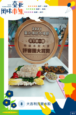 記者黃俊育 / 臺北報導 為讓市民朋友在舌尖體會精緻又簡單的美味,品味最在地的臺北,「2022臺北城市博覽會」特別於中秋連續假期(9/9~9/11)在圓山花博長廊廣場的「臺北風味市集」,推出「風格餐飲週」,三十家享譽國際的臺北在地品牌齊聚一堂,適合闔家大小前往休憩娛樂,不僅能一覽臺北市歷年光華及發展願景,更可以在此同享味蕾新體驗。 ▲大吉利元寶水餃。(圖/臺北市政府展業發展提供...... [閱讀更多]