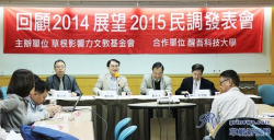 草根影響力影音新聞_【「回顧2014、展望2015」民調記者會】2014年民眾最有感的正、負面事件是?[embedded content]延伸閱讀:2015台灣燈會 台中放光彩故宮歡慶90周年 大英博物館來展柯P新政民眾反應兩極大英博物館特展 帶您進入文明旅程奶油標示不清 反增罹病風險
