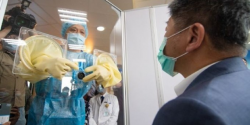 衛福部長陳時中27日下午前往桃園醫院參加企業聯贈「移動式檢查屏風」受贈儀式,桃園市長鄭文燦陪同參加。鄭文燦表示,桃園為國境大門,部立桃園醫院、長庚醫院在防疫工作皆扮演重要角色,感謝新光鋼鐵公司、亞護開發及明昌國際工業公司共同捐贈予衛福部疾管署和部立醫院「移動式檢查屏風」共156座,價值共約360萬元。感謝民間廠商大力相助,有效降低醫護人員採檢風險,減少救護衣的耗量及院內交...... [閱讀更多]
