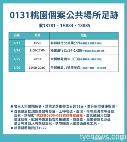 桃市1/31公布個案足跡 曾到訪過這些地方