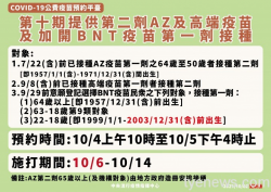 第11輪AZ第2劑、BNT第1劑開放預約 10/15開打 | 桃園電子報-台灣新聞天天報