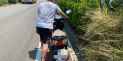 桃園市觀音區一名黃姓男子,16日中午騎車外出幫爺爺買午餐,不料機車突然在半路上拋錨,黃男一時找不到人求助,只能在烈日下牽車,巡邏員警見狀,不僅幫忙聯繫機車行將車運回維修,同時化身為另類外送員,協助載黃男返家,幫助他完成送餐的任務。 觀音區黃姓男子,16日中午騎車外出幫爺爺買午餐,不料機車突然在半路上拋錨,在大太陽底下汗流浹背推著機車。圖:劉筱寧翻攝 大園分局新...... [閱讀更多]