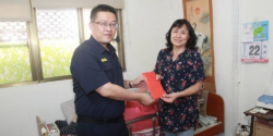 平鎮警分局平鎮派出所警員金少雄,於96年9月間處理一起夫妻爭吵糾紛時,遭後方機車高速追撞,因撞擊力道過大,造成金員頭部重創大量出血,雖緊急送醫搶救後挽回一命,但導致金員智力退化成3歲,全身癱瘓無法自理,分局長李建民特別在端午節前夕,代表警察局局長陳國進,帶著全警察局同仁的慰問及祝福,前往桃園市龍潭區慰問金少雄及眷屬,關心金員生活狀況。 平鎮分局長李建民帶著慰問金及水...... [閱讀更多]