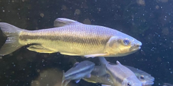 博物館防疫之非常時期,國立海洋科技博物館特展廳所展出的「臺灣濕地魚類生態特展」內的海洋生物絲毫不受疫情影響,特展廳內的「臺灣縱紋鱲」原屬夏季才會繁殖的物種,因策展布置與棲息地環境建置得宜,突破原繁殖季,近期「臺灣縱紋鱲」魚媽媽產卵,孵化出許多小魚,成為海科館開春以來濕地特展第一缸喜訊。 「臺灣縱紋鱲」成熟雄魚吻部具追星,腹鰭和胸鰭鮠鮮紅色;雌魚顏色較淡,體長...... [閱讀更多]