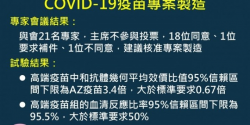 食藥署為積極因應新型冠狀病毒疾病(以下簡稱COVID-19)疫情防疫需求,於110年7月18日邀請國內化學製造管制、藥學、毒理學、臨床醫學、公衛、法律及醫學倫理專家召開會議,討論高端MVC-COV1901新冠肺炎疫苗(以下簡稱高端疫苗)專案製造申請案。 衛福部核准高端疫苗專案製造。圖:疾管署提供 經過一天充分的審查與討論,鑑於高端疫苗的中和抗體數據已證明不劣於...... [閱讀更多]
