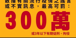 新冠肺炎疫情升溫,連日來本土確診人數不斷攀升,指揮中心於17日宣布本土案例又激增333人,民眾擔心疫情,每天都有各種疫情消息在社群轉傳,指揮官陳時中表示,轉傳未經證實的假消息,不但有刑責也會有罰款,最高可罰300萬元。 散播有關流行疫情之謠言或不實訊息,最高可罰新台幣300萬元或3年以下有期徒刑、拘役。圖:中央流行疫情指揮中心提供 ...... [閱讀更多]