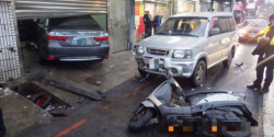 桃園市八德區6日發生一起暴衝車禍事故,一輛自小客車從廣福路上停車場駛出馬路時,疑因一時煞車失靈,導致車輛直接向前衝撞對向停等紅燈的汽、機車,一名機車騎士整個連人帶車被撞進民宅中,另外多輛汽、機車受波及,警方獲報立即趕抵現場,詳細肇事原因仍待進一步釐清中。 民宅鐵門被撞變形,路邊多輛汽車及民宅旁的電器行電器也遭波及。圖:邱怡芳翻攝 民宅鐵門被撞變形,路邊多輛汽車...... [閱讀更多]
