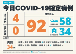 指揮中心:國內1/12新增4例本土 92例境外移入 | 桃園電子報