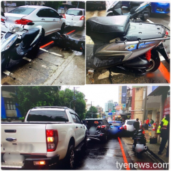 22日中午12點左右,八德區建國路上發生一起連撞車禍意外,由41歲邱姓男子所駕駛的自小貨車因誤踩油門,追撞前方停等的休旅車及另5輛汽車及2輛機車,造成車輛受損,39歲邱姓女駕駛左手擦傷,當事人經酒測值為零,相關肇事責任由警方進一步釐清。 男子誤踩油門當煞車,暴衝連撞8車1人受傷。圖:邱怡芳翻攝 ...... [閱讀更多]