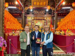 國家三級古蹟南崁五福宮慶祝建廟360週年,舉辦諸多活動,也在上週六16日進行「財神賜寶(金虎)擲筊比賽」擲出1到8錢不等的純金金虎,歷經四輪擲筊、圍觀民眾眾多,競爭激烈。 南崁五福宮主委陳宗賢(右)、總幹事邱進賢(左)頒發第一獎金虎。圖:陳毅翻攝。 南崁五福宮主任委員陳宗賢表示,南崁五福宮為恭祝武財神玄壇元帥聖誕千秋,按照慣例舉辦財神賜寶活動,敦睦信眾情誼,提...... [閱讀更多]