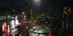 煙花颱風逐漸逼近台灣,天氣變化無常,陣陣瞬間大雨。21日晚間,龜山派出所警員巡邏經過山坡處時,發現有5棵路樹倒塌,砸到停在路邊一輛自小客車。警方立即進行交通疏導,並通知焦姓車主及龜山區公所人員到場處理。 強風豪雨折斷路樹 壓毀自小客影響交通。圖:警方提供 龜山警分局表示,21日晚上7點20分左右,龜山所警方巡邏經過茶專路與兔坑路53巷口時,在附近山坡看到有路樹...... [閱讀更多]