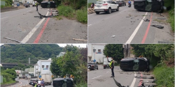 17日中午,36歲王男駕駛休旅車由桃園往新北方向行駛,疑似因車速過快,在變換車道時不慎擦撞到山壁,再追撞前方49歲楊男駕駛的自小客車,兩台車連續翻轉好幾圈,場面怵目驚心,嚇壞不少經過車輛。 龜山車禍追撞事故 2車連翻數圈噴飛。圖:警方提供 龜山警分局表示,17日12點12分左右,王男開車經過龜山區東萬壽路768號前,疑似駕車速度過快...... [閱讀更多]