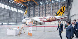 桃園市長鄭文燦22日下午前往大園區,出席台虎與桃猿樂天棒球公開亮相彩繪聯名航機發表活動。鄭文燦表示,台灣虎航與Rakuten Monkeys共同合作推出彩繪航機,這不僅是台灣虎航的首架彩繪機,更是國籍航空首次與國內職業棒球隊合作,機身除保留台灣虎航最具代表融合Taiwan本島形體的logo字樣以及虎紋尾翼外,再結合Rakuten Monkeys吉祥物Rocky及球隊log...... [閱讀更多]