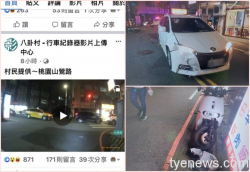 有網友上傳一則行車紀錄器畫面到臉書社團「八卦村 – 行車紀錄器影片上傳中心」,時間地點發生於龜山區山鶯路7日晚上6點40分左右,該網友於路口停等紅綠燈時,前方右側車道駕駛白色自小客的22歲蘇男欲左轉到信義街,直行小黃見狀後退讓其通行,此時也要直行的騎士33歲蘇男未減速撞上,結果直接「彈」到蘇男擋風玻璃上又被「載」了幾公尺,停在目擊網友身邊,讓人看了為他捏把冷汗。 22歲蘇...... [閱讀更多]