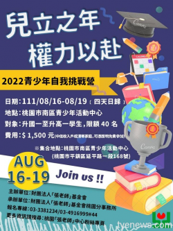 暑假來臨,許多家長都會擔心應該要幫孩子安排什麼樣的暑假生活,放暑假是為讓孩子有更多機會接觸學校外的人事物,從事有意義的休閒活動將有助於調劑身心和學習成長,但暑假這麼長更不希望孩子都只是待在家,或沉浸在3C的世界,到底該怎麼樣幫孩子規劃一個充滿回憶的暑假呢? 08/16~08/19「2022為自己未來發聲-「張老師」青少年自我挑戰營」在桃園市南區青年活動中心舉行。圖:...... [閱讀更多]