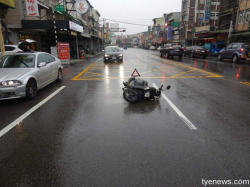 桃園市大溪區員林路一段昨(23)日發生一起騎士自摔受傷事件,一名施姓女騎士,為閃避從巷弄駛出欲左轉的汽車,疑似因天雨路滑,急煞的同時當場自摔,在地上翻滾了一圈,汽車駕駛則是嚇得直往後退,所幸施女還能迅速自行站起身,身上僅有擦挫傷。大溪警分局獲報後前往現場為當事人進行酒測檢查,酒測值為0,警方將透過監視器與行車紀錄器還原事發經過,釐清事故原因。 女騎士為閃避從巷弄駛出...... [閱讀更多]