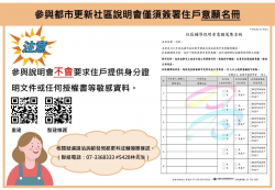 高市府都發局提醒市民參都更,應保護個人權益並留意個資安全 圖/都發局 為確保民眾在參與都更過程中留意個人資料的保護,高市府都發局昨(18)日發布參與都更注意事項圖卡,提醒市民在參與都市更新時,應保護個人權益並留意個資安全,有任何疑慮也請直接洽詢都發局確認及釐清。 都發局輔導社區推動自主都更成果顯著,去年已成功協助8個社區推動,為鼓勵更多社區加入,在本市設置5處都市更新工作站駐點...... [閱讀更多]