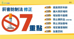 (圖/ 衛福部國健署) 臺灣修訂後的《菸害防製法》自2023年3月22日生效,顯著擴大了公共場所的禁菸範圍。根據新法規,吸菸在大專院校、幼兒園、托嬰中心及居家托育場所等室內外公共空間全面禁菸。商業場所如百貨公司、飯店、餐廳、酒吧、夜店等,其室內吸菸區必須具備獨立空調及隔間設置。 該修訂明確規定禁菸場所的管理要求,所有禁止吸菸的場所需在每個入口處設置明顯的禁菸標示,並不得提...... [閱讀更多]