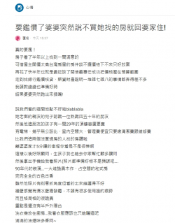 生活中心/綜合報導 有些長輩的插手真的讓人不知所措!一名女網友在Dcard上發文,描述她和男友購房過程中的困境。經過一年多的努力,他們終於找到一間滿意的房子,價格也在預算範圍內。然而,就在他們準備銀行鑑價和貸款申請的關鍵時刻,未來的婆婆突然插手,提議購買一間29年的頂樓華廈。 (圖/翻攝自Dcard) 婆婆聲稱這間華廈地點優越,空間大,管理費低,並且離婆婆家僅五分鐘車程,方...... [閱讀更多]