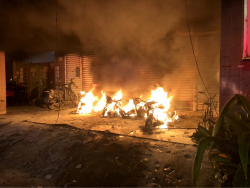 ▲18日凌晨,恆春男酒後爭執投擲汽油彈導致現場一片火海。(圖/恆春分局提供) 【記者莊全成/屏東報導】屏東縣恆春鎮西門路一處民宅,今(18)日凌晨3時發生爆炸聲,導致現場一片火海。據了解,黃姓嫌犯與陳姓受害人於小吃部喝酒,因敬酒引發口角使得黃嫌不滿,教唆友人前往陳被害人住處,使用汽油引發火災,火勢蔓延至屋內。恆春警方迅速派出快速反應小組,處理火勢並逮捕嫌犯,火災導致5輛機車被焚毀,...... [閱讀更多]