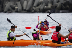 記者樊德惠/宜蘭報導 在蘇澳鎮長李明哲的開場下,2023蘇澳海洋運動嘉年華8月6日在豆腐岬熱鬧展開,一天的競賽活動除了包括獨木舟接力、SUP接力及SUP龍舟板等正規競賽外,還包含獨木舟拔河及SUP啤酒大賽等趣味競賽,內容相當有趣精采。有的參賽者不是一開始就站不穩,有的卻是愈划愈遠,連方向都亂了套,Sup啤酒大賽更要喝下三罐啤酒來分勝負。競爭最激烈的SUP龍舟板競賽,現場更...... [閱讀更多]