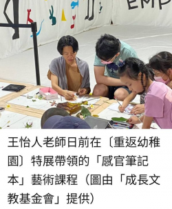 【記者張永勳/桃園報導】由成長文教基金會於五月中起承辦的藝術家駐村的活動「重返幼稚園」特展,到八月底即將結束展期。在8月12.13日的特展裡,將由藝術家王怡人老師帶領「感官實驗繪畫筆記本」藝術Live課程。 義大利米蘭BRERA藝術學院碩士,黑盒子影像沙⿓創辦人的藝術家王怡人老師,她自小就特別喜歡動植物,常遊走在森林裡有感受著大自然的能量與快樂,透過拾揀小樹枝,枯葉,花朵與石頭,都...... [閱讀更多]