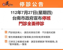 南部最大聲/ 曾志豪編輯 因應杜蘇芮襲台,南部部分縣市停止上班課,包括高雄榮總、高雄長庚等晚間都宣佈明日停診;高雄大同醫院、高醫大附醫明日則開設天然災害彈性門診。 台南市 成大醫院: 112年7月27日(週四)停班,成大醫院門診全面停診。 一、台南市政府宣布停班,本院門診停診。...... [閱讀更多]