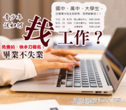 南部最大聲/ 編輯部 高中和大專生畢業,面對的就是升學或就業?但是要如何面對就業,便是一到難題。社團法人高雄市八方義行團關懷協會,特別邀請獲得蔡英文總統接見、世界教育創新獎的超強業師帶領孩子們走向健康、正確的求職路。全程免費,歡迎大家快手刀報名! 畢業不失業,如何面對就業?給青少年進入職場的一堂寶貴課程,無論你是國中、高中、大學生,任選場次或全部參與,主辦單位...... [閱讀更多]