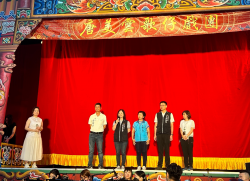 【記者廖宥婷/台中報導】 臺中市政府文化局舉辦「2023臺中市傳統藝術巡演」系列活動,今(15)日晚上7時在葫蘆墩文化中心廣場登場,邀請文化部臺灣品牌團隊-唐美雲歌仔戲團於戶外演出經典大戲《天鵝宴》,包括唐美雲、「人間國寶」王金櫻及小咪等名角齊聚臺中,超強夢幻陣容讓觀眾大飽眼福,活動由文化局主任祕書蕭靜萍代表市長出席,現場座無虛席、吸引近2000位觀眾來看戲,熱鬧非凡。 唐美雲...... [閱讀更多]