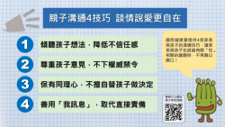 今(14)日為西洋情人節,在鮮花及巧克力的襯托下,情侶間瀰漫著戀愛的氛圍,但對於青少年的家長來說,雖然看到自己的孩子能夠多與朋友建立友好的人際關係,但也會擔心孩子與愛慕的對象出門約會後,是否會發生不恰當的「越界」行為,如何跟孩子溝通與取得信任,更顯得重要。國民健康署提供家長與孩子溝通的4招技巧,讓爸媽與孩子在談論有關「性」相關的議題時不再難以開口,讓孩子願意主動說出他們的想法。 ...... [閱讀更多]
