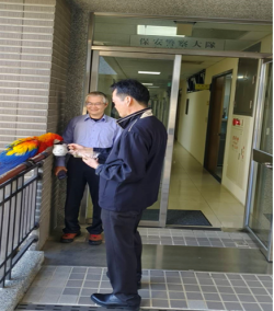 圖文:鸚鵡離家出走飢渴求助 中市保大透過腳鐐資料通知飼主前來領回。 【總社長孫崇文、特派記者陳信宏報導】 圖文:鸚鵡離家出走飢渴求助 中市保大透過腳鐐資料通知飼主前來領回。 13日警政署發布重要警職人事案沒多久,一隻混種鸚鵡突降臨臺中市政府警察局保安警察大隊7樓空中走廊,然後大叫一聲引起辦公室內同仁聞聲前去探查,這隻鸚鵡就安靜地站在欄桿上,同仁見它遇人不怕生,便...... [閱讀更多]