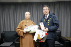 【News586/記者張中俊 報導】為慶祝農曆12月8日的佛陀成道日,佛光山南台別院每年準備佛粥(臘八粥),除在道場供應禮佛信眾外,還分送政府機關、公司行號及弱勢團體等單位,今(7)日南台別院住持滿舟法師親送臘八粥及春聯「向前有路 光明在望」至臺南市政府與市長黃偉哲分享,黃偉哲也回贈臺南農特產品,且對於佛光山長久以來對臺南社會福利的重大貢獻致上謝意。 市長黃偉哲表示,臘月來臨就是歲...... [閱讀更多]