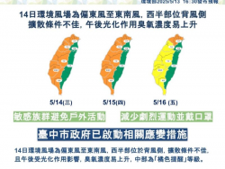 (記者林明佑/台中報導)依據環境部預報資料顯示,明(14)日環境風場為偏東風至東南及15日環境風場為東南風,西半部位於背風側,擴散條件不佳,且午後受光化作用影響,臭氧濃度易上升,未來二日中部地區空品皆有達到「橘色提醒」等級之虞,指標污染物為「臭氧八小特」或「細懸浮微粒」,台中市政府已啟動應變措施,並將持續監控空品狀況,也提醒敏感族群留意空品變化,外出做好防護措施。 環保局說明...... [閱讀更多]