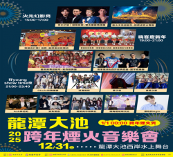 【News586/記者彭慧婉報導】 「2025龍潭大池跨年煙火音樂會」,將於今年的最後一天12月31日舉辦,並在今年的最後一刻,綻放「長達300秒」的煙火,點亮龍潭夜空,燦爛迎接嶄新的一年,歡迎民眾一起感受跨年晚會的聲光魅力。本次活動由桃園市政府文化局、觀光旅遊局、客家事務局、青年事務局與龍潭區公所共同辦理。 今年跨年活動自12月31日午後拉開序幕,以「龍潭大池西岸水上...... [閱讀更多]