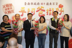 【 News586/ 記者張中俊 報導】父親節即將到來,相信許多人想選擇一份既傳達心意又不失莊重大氣、適合給爸爸的禮物,臺南市政府與遠東百貨今(5)日於板橋大遠百B1綠洲區舉行「乎阿爸攏好~父親節就是要送火鶴花」記者會,由火鶴花達人林芳珠帶領臺南市長黃偉哲一起插花,教大家花語及火鶴花的故事。市長夫人劉育菁也精心準備火鶴花,替女兒贈送給爸爸,為父親節增添幸福氛圍。黃偉哲也分送花束給現場民...... [閱讀更多]