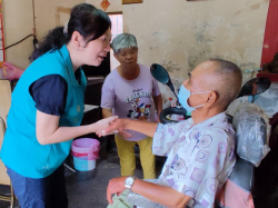 〔News586/記者陳允得報導〕高齡77歲的洪姓老榮民於35年前因車禍雙腳截肢,日常生活均由配偶協助,抱上抱下,一不小心洪姓老榮民還會像不倒翁一樣倒下來;嘉義榮民服務處為落實對退除役官兵服務照顧,由許淑菁處長偕同「一群熱心人士協會」創會人王建宗先生及該會志工等一行人,一同前往關懷洪姓老榮民並致贈慰問金,表達輔導會及社會公益團體對榮民長輩的關懷之意。 生活雖清苦,但洪姓...... [閱讀更多]