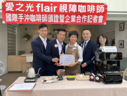 【 News586/記者黃秀卿報導】台灣愛之光公益協會去年開辦第一屆視障咖啡師培訓課程,日前成功幫助8名學員跨海考取「IOPCA國際手沖咖啡師證照」,今(27)日於「flair咖啡∙香氛」舉辦「國際手沖咖啡師頒證暨企業合作記者會」,見證愛之光開創視障者就業的無限可能。台中市工商發展投資策進會總幹事黃于珊到場,給予視障咖啡師祝福及勉勵。 ...... [閱讀更多]